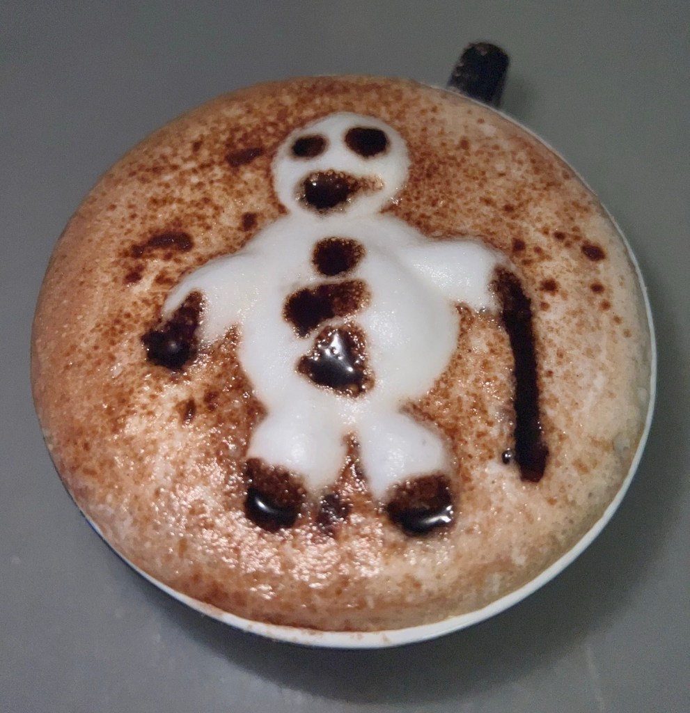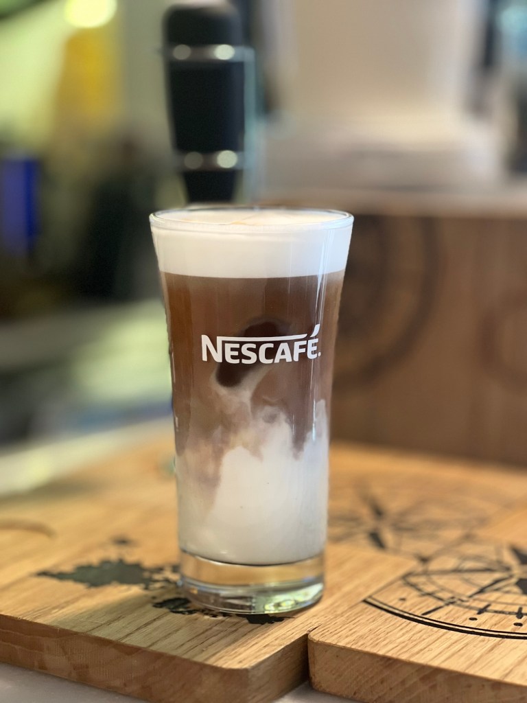 Espresso y leche montada. Podemos agregarle cacao espolvoreado y chocolate.