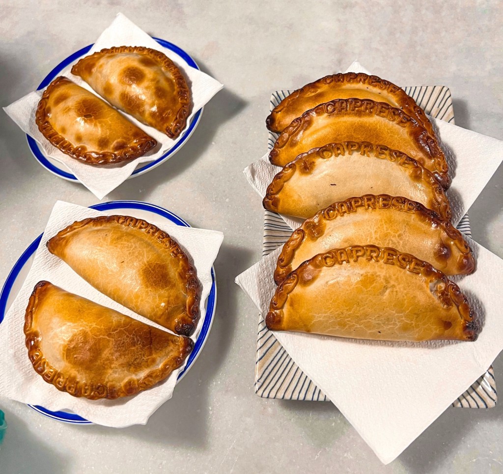 Disponible en versiones de carne, carne picante, pollo, pollo picante o caprese.